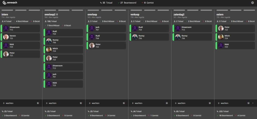 Daarnaast zijn er out of the box dashboards om in één oogopslag te zien wie er in welke callcenter zit en hoe de belletjes verdeeld zijn over de afdelingen.